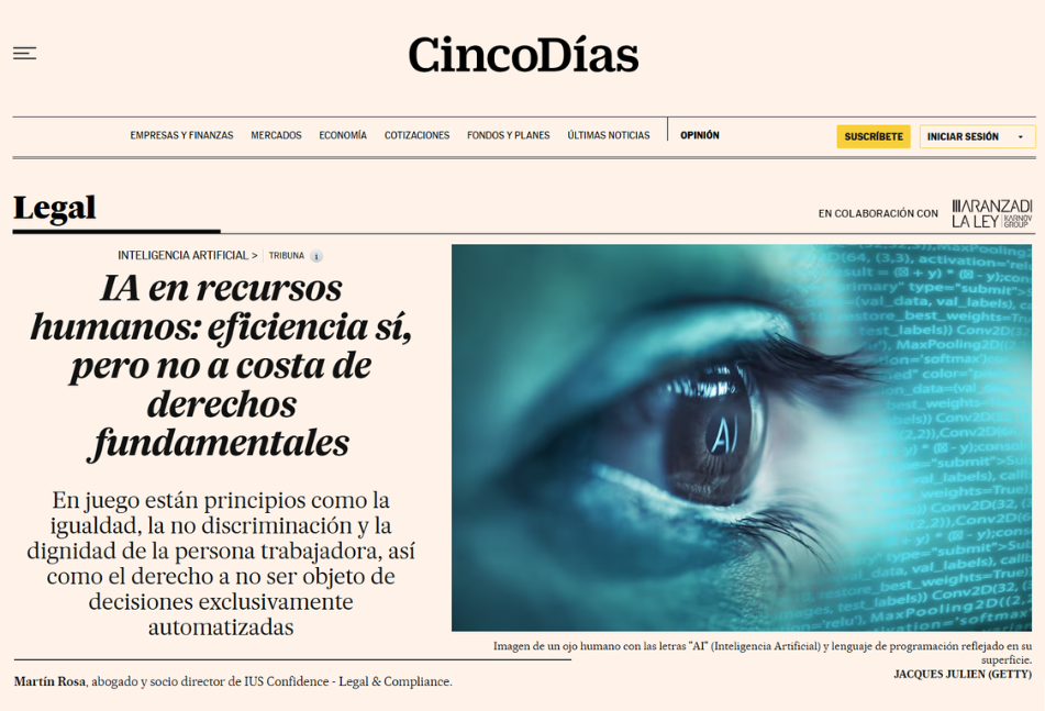 Martín Rosa, abogado y socio director de IUS Confidence, firma en Cinco Días una tribuna que alerta con claridad: la responsabilidad penal de las personas jurídicas es una realidad plenamente asentada en nuestro sistema jurídico, y su prevención ya no puede considerarse una cuestión voluntaria......