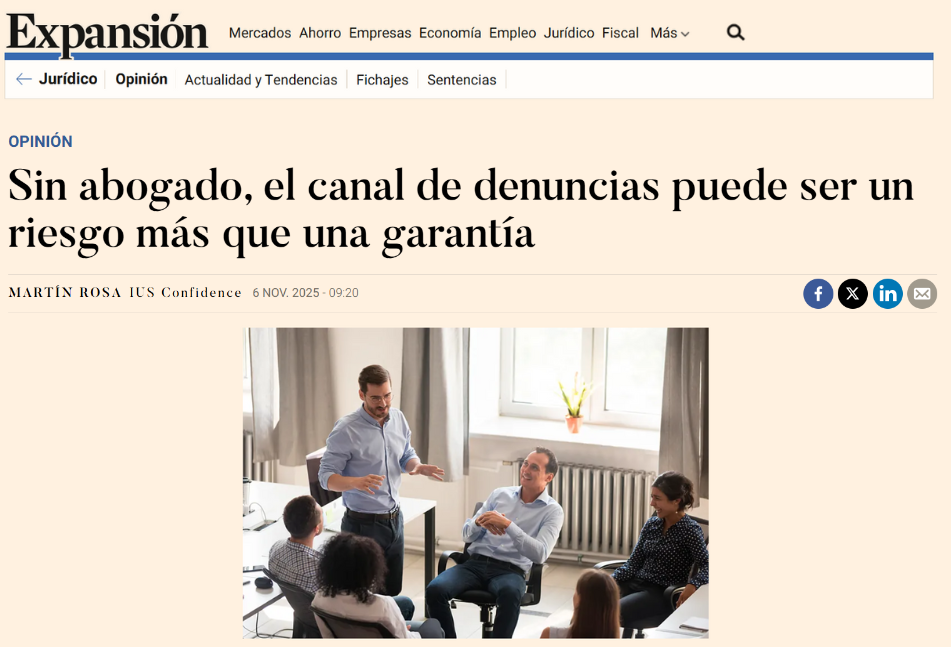 Martín Rosa, abogado y socio director de IUS Confidence, firma en Cinco Días una tribuna que alerta con claridad: la responsabilidad penal de las personas jurídicas es una realidad plenamente asentada en nuestro sistema jurídico, y su prevención ya no puede considerarse una cuestión voluntaria......
